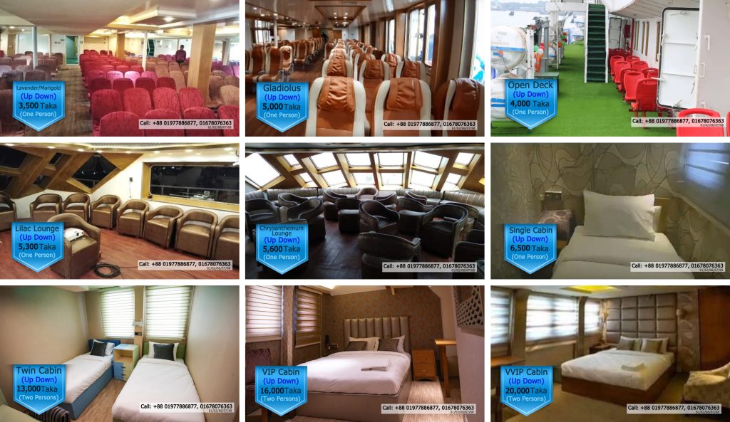 10 | VVIP Cabin | 3 | 20,000 | 10,500 |