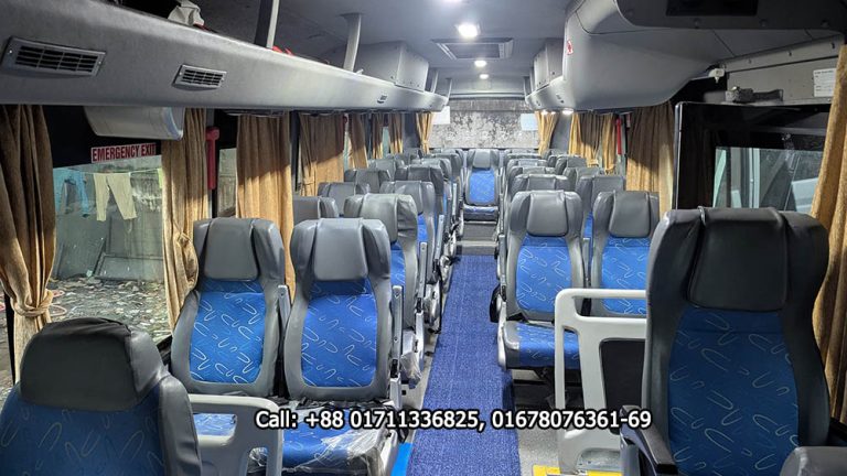 Remember that AC luxurious coach service is so much expensive that it will hard to bear the cost for your office staff or for your friends or relatives. For example Hino AC coach, rm2 ac bus, Hyundai ac bus etc. These bus seat capacity is 36 to 40. Rent approximately 60,000 to 80,000 taka per day per bus.