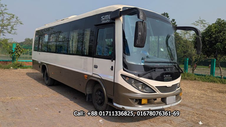 SML Isuzu is a trusted name in the commercial vehicle industry, and their 30-seater mini bus is a popular choice for group travel. These mini buses are well-maintained, comfortable, and equipped with all the necessary features to make your journey a smooth and enjoyable one.Total Fare 25,000 Taka day long.
